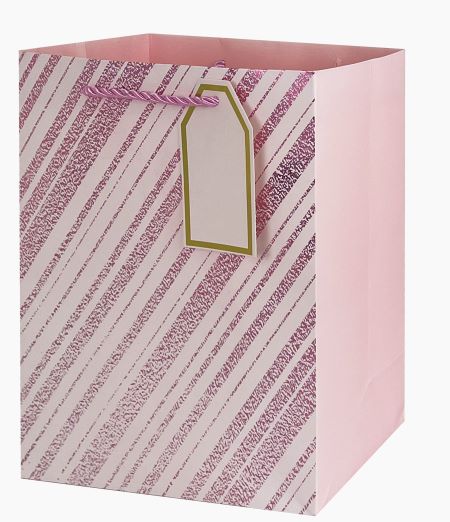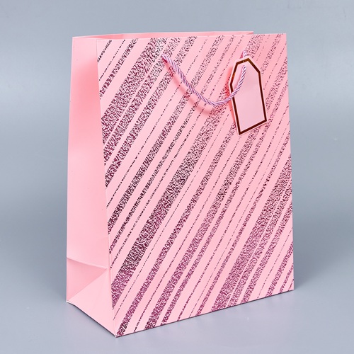 Пакет подарочный "Металл диагональ", 32*26*12см, розовый