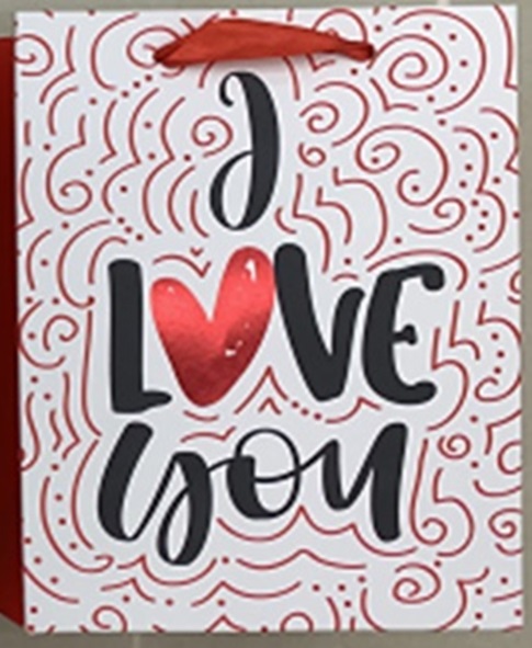 Пакет подарочный с глиттером "LOVE YOU" 3, 26*12*32см