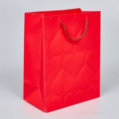 Пакет подарочный с тиснением "Сердца" 23*18*10см, красный