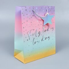 Пакет подарочный "Счастье" 4, 32*26*12см, радужный металл