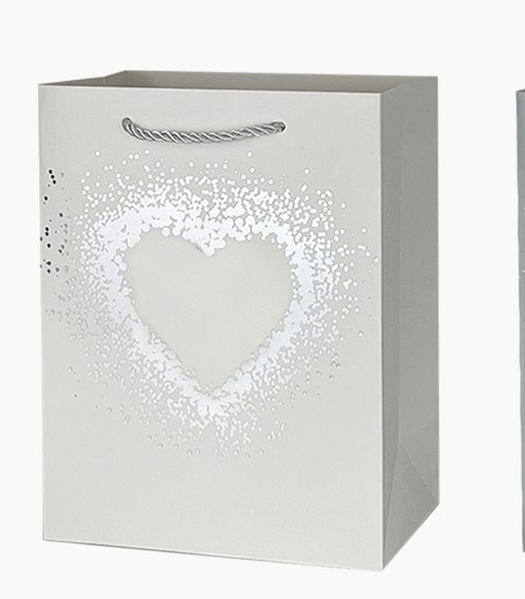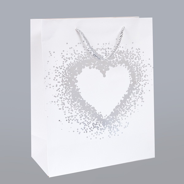 Пакет подарочный "Сердце металл", 32*26*10см, белый