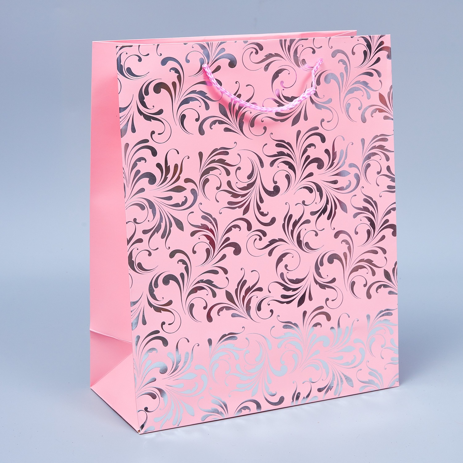 Пакет подарочный "Серебряные узоры" 32*26*12см, розовый