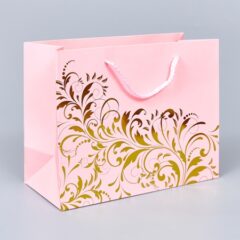 Пакет подарочный "Золотые узоры" 23*18*10см, розовый