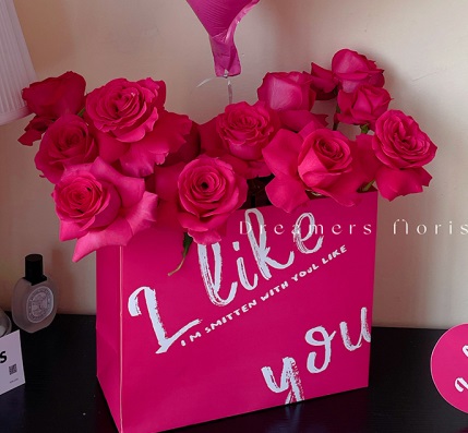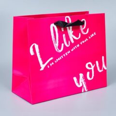 Пакет подарочный "I like you, 25*30*13см, малиновый
