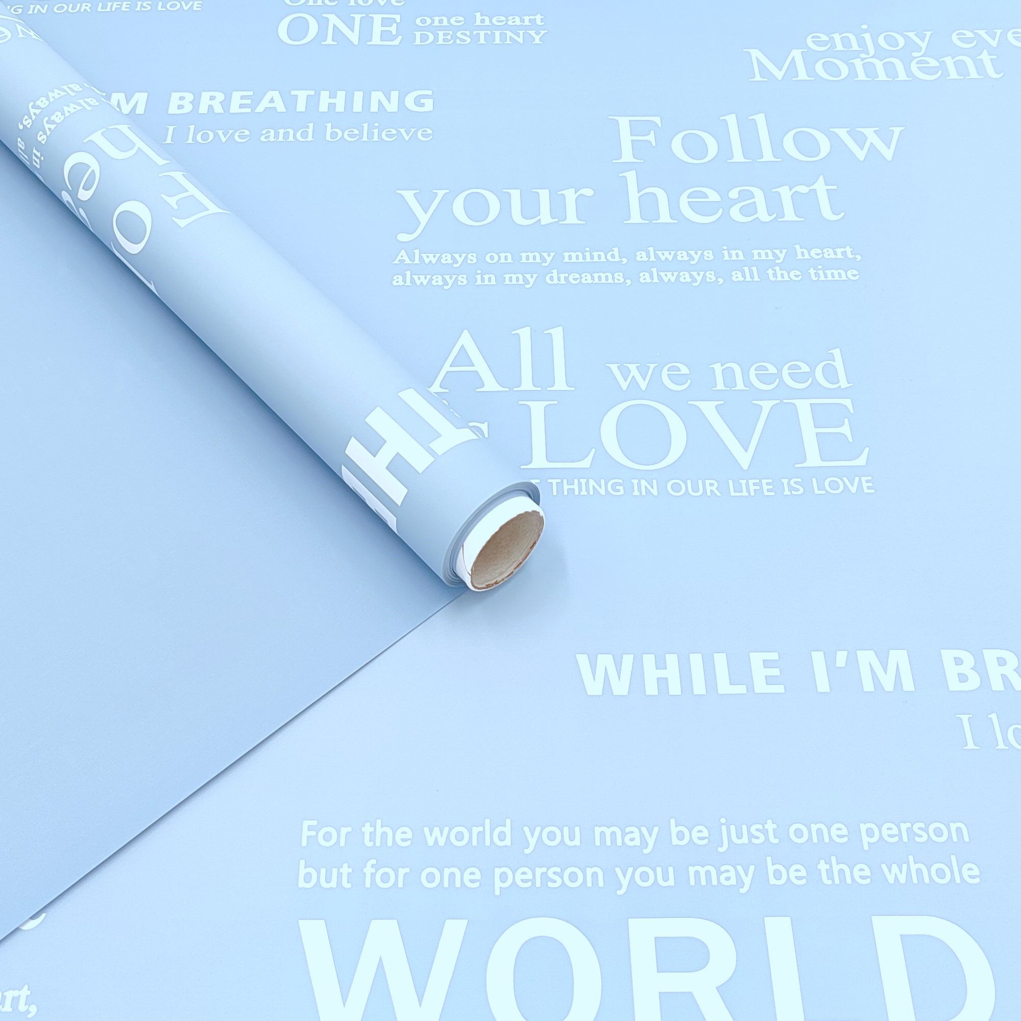 Матовая плёнка "Это ЛЮБОВЬ..." 60см*10м 65мкр. Голубой
