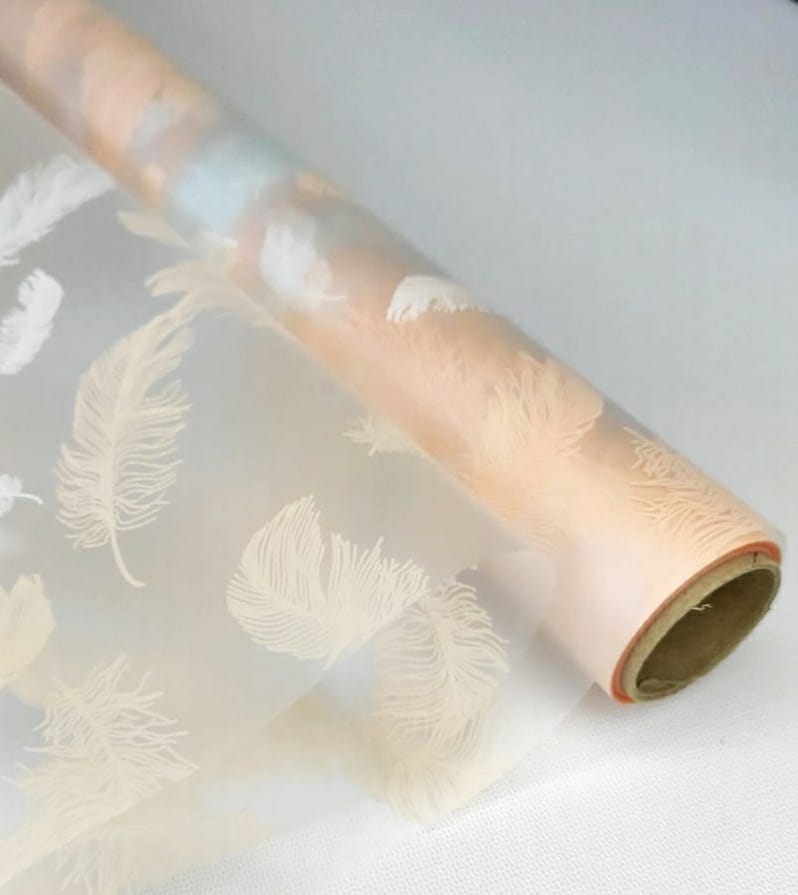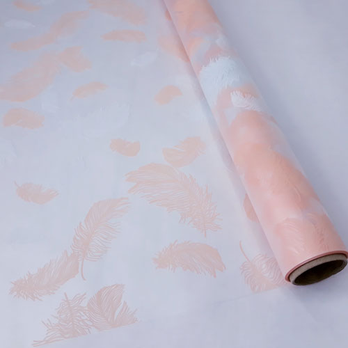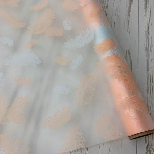 Пленка матовая "Перья" 60см*10ярд, персик