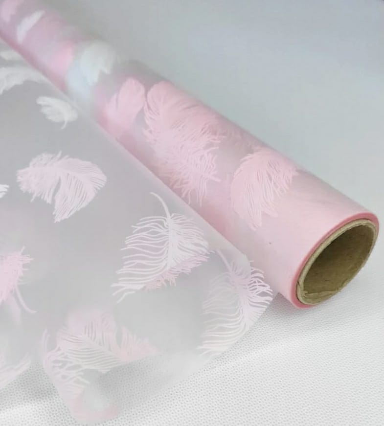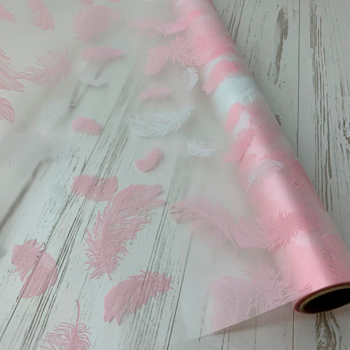 Пленка матовая "Перья" 60см*10ярд, розовый