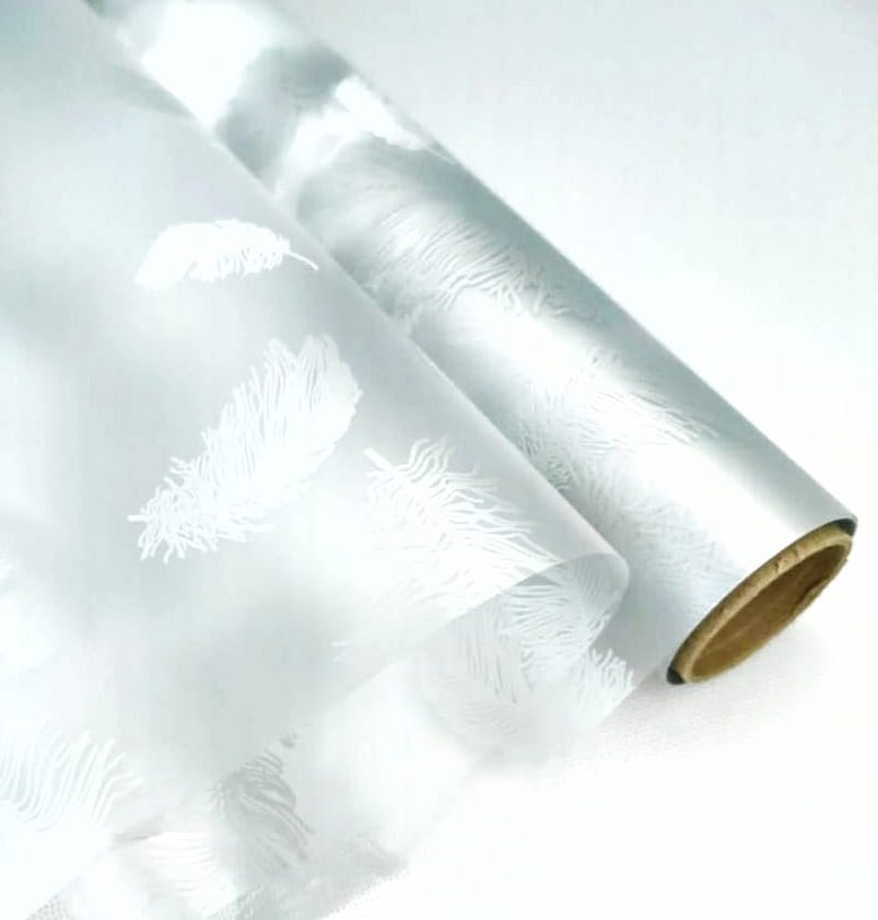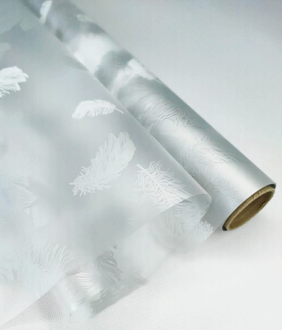 Пленка матовая "Перья" 60см*10ярд, серебро