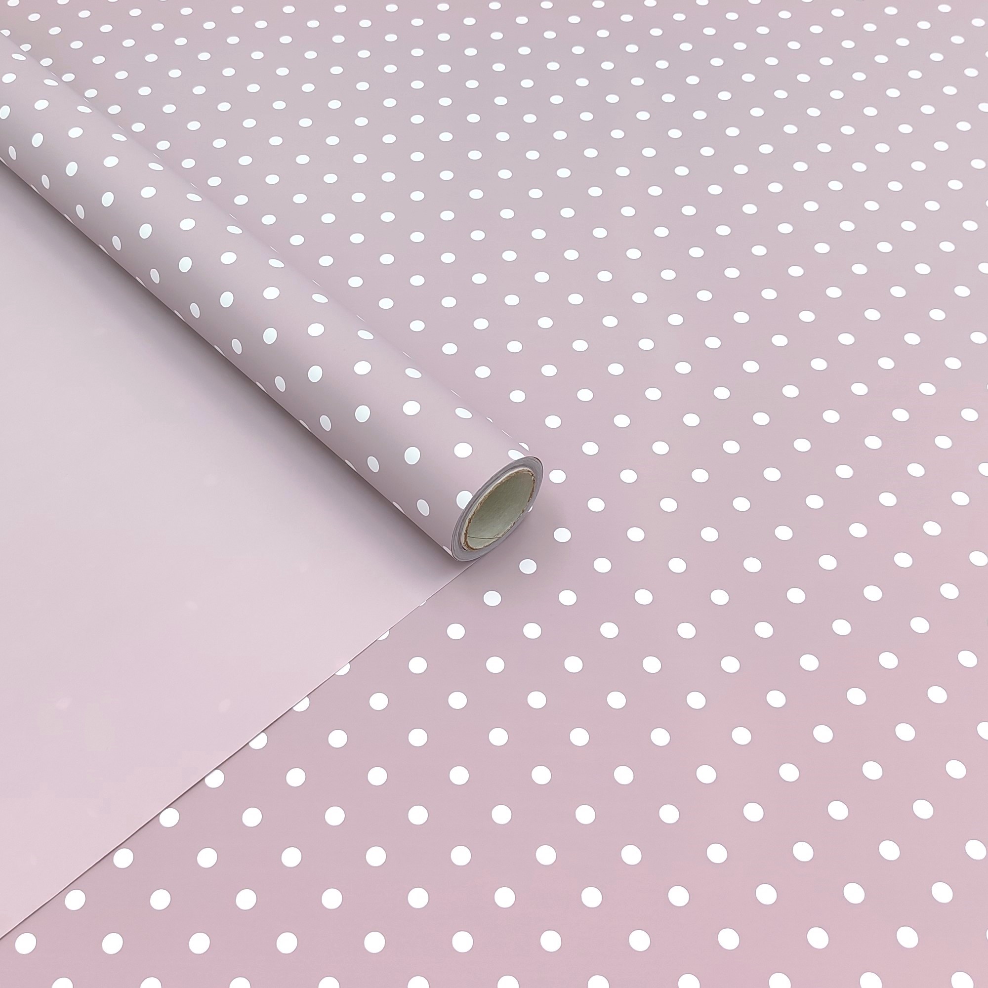 Плёнка матовая "Горошек" 60см*10 ярд 65мкр., пудра