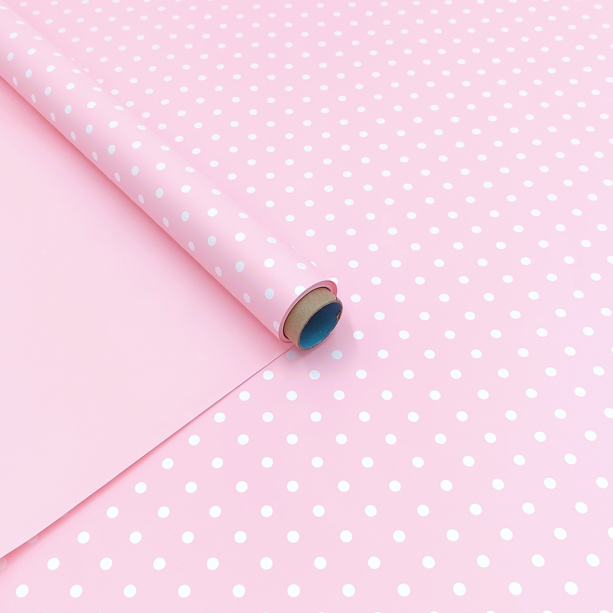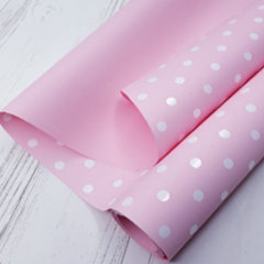 Плёнка матовая "Горошек" 60см*10 ярд 65мкр., розовый