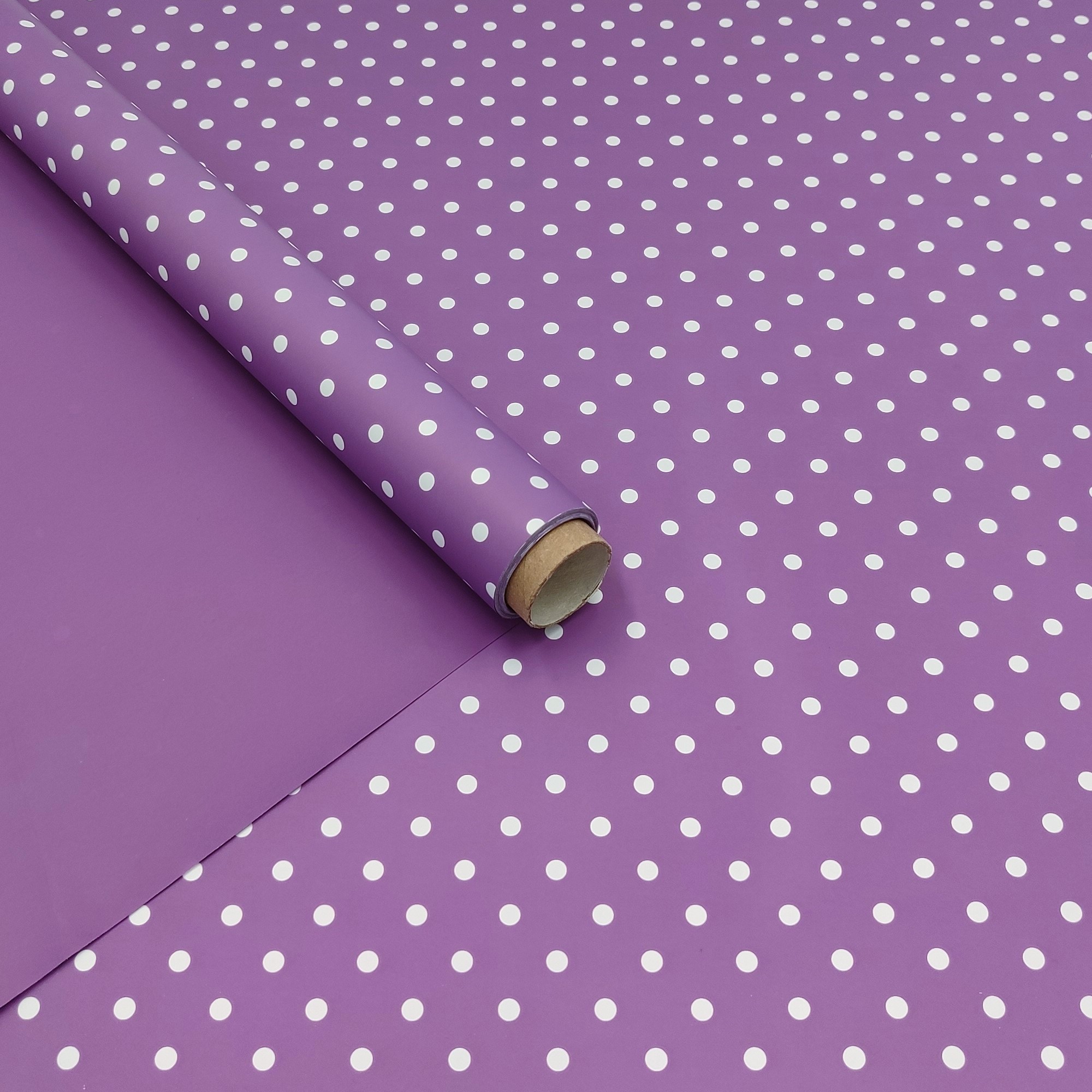 Плёнка матовая "Горошек" 60см*10 ярд 65мкр., тёмно-сиреневый