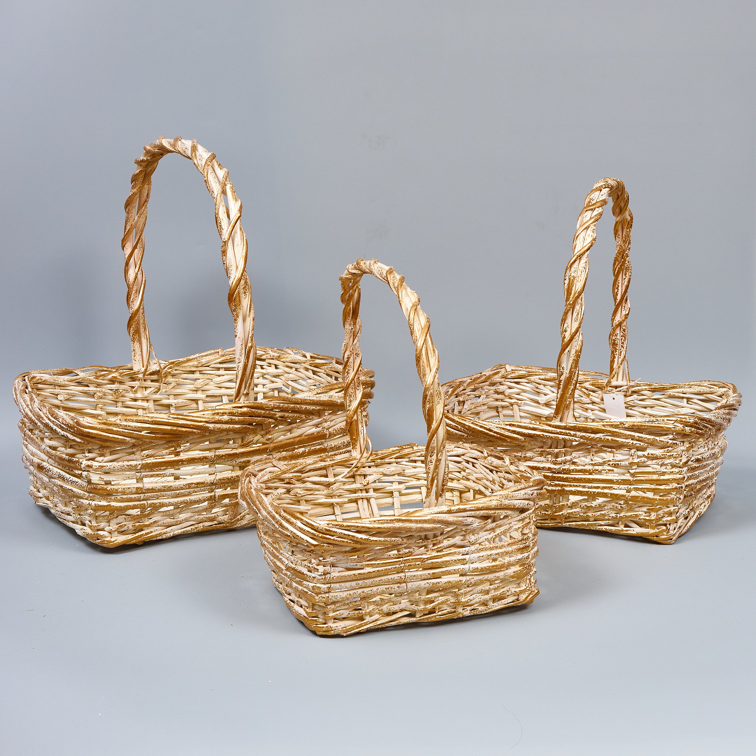 Корзины из ивы 43*36*17*47, 37*31*15*40, 31*26*13*33,5, 3шт, бело-золотой