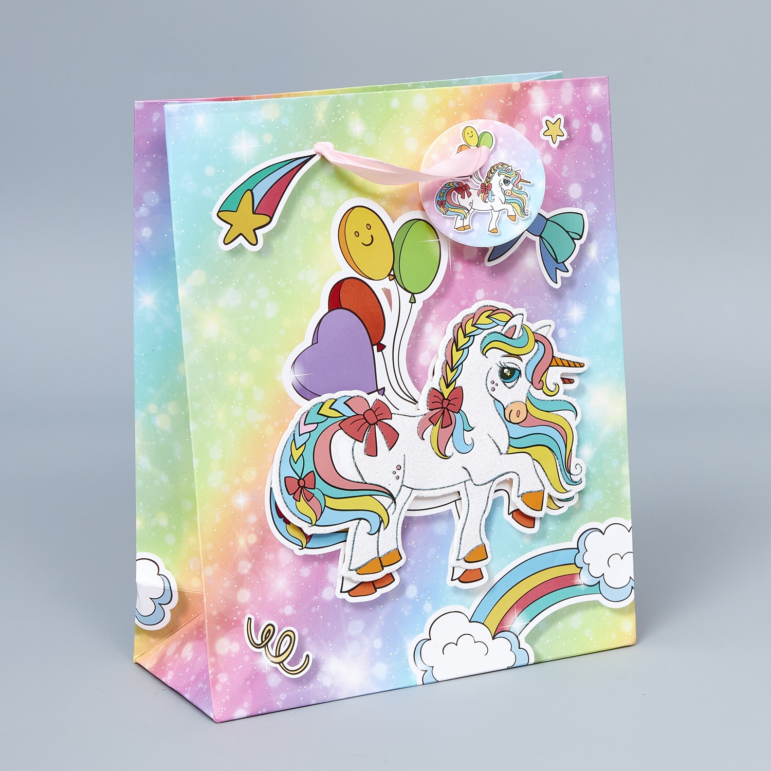 Пакет подарочный 3D "Единорожки, S4", 19,5*8*23,5см